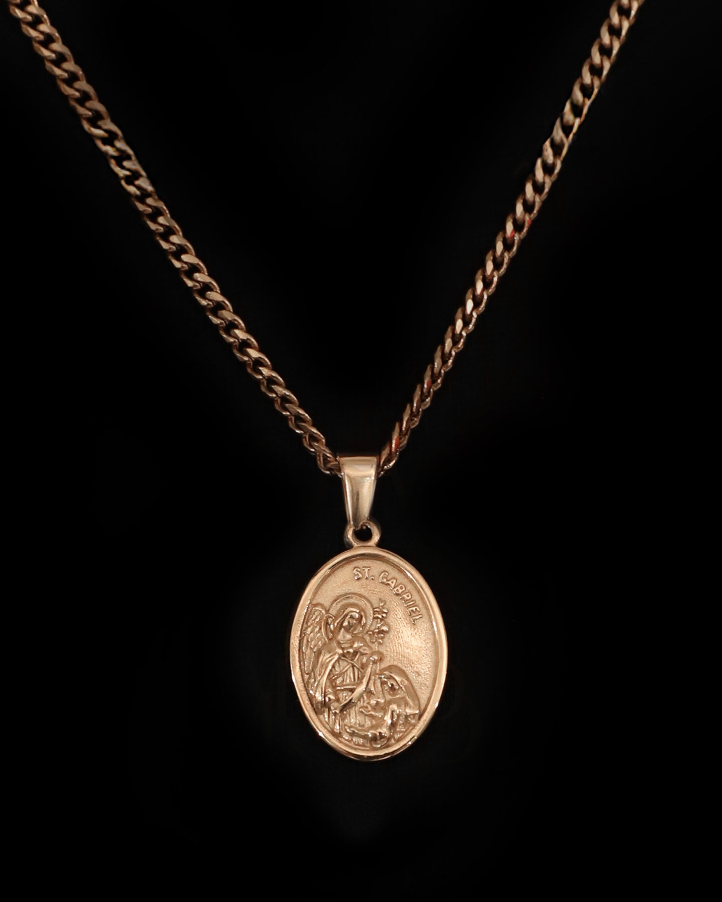 This St. Gabriel pendant necklace symbolizes clarity, guidance, and divine communication. Featuring a beautifully detailed depiction of the Archangel Gabriel, the messenger of God, this piece radiates serenity and purpose. Its polished finish and timeless design make it a meaningful emblem of faith, intuition, and inspiration — perfect for those who seek light, truth, and spiritual connection.