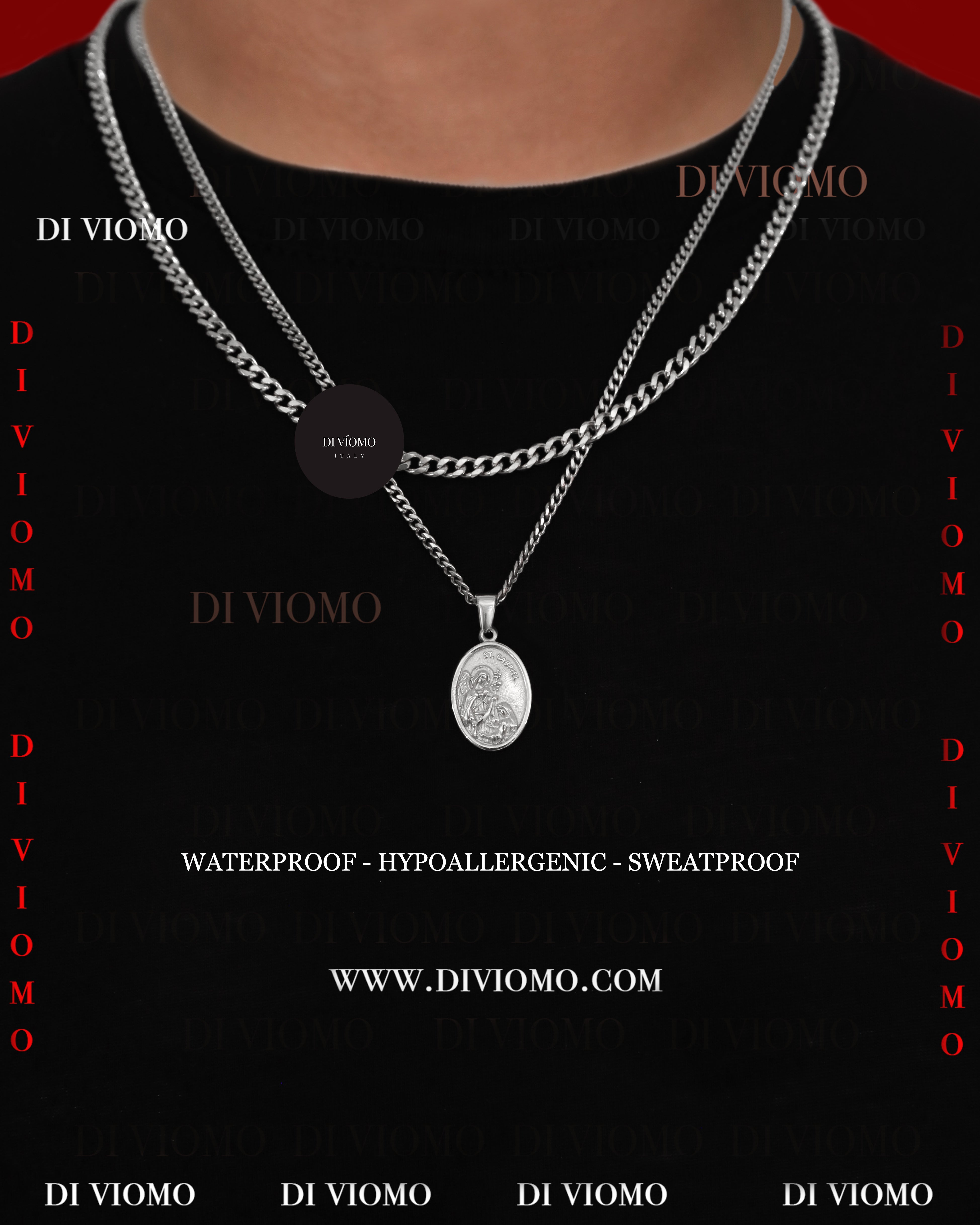Wear your necklace in the shower, the pool, or at the gym - it will never rust, tarnish or fade. Whilst always maintaining that fresh out the bag finish. Di Víomo is equally suited for more refined occasions and will make any outfit.